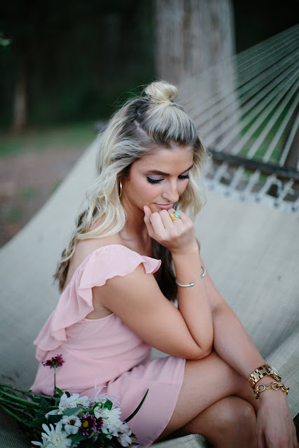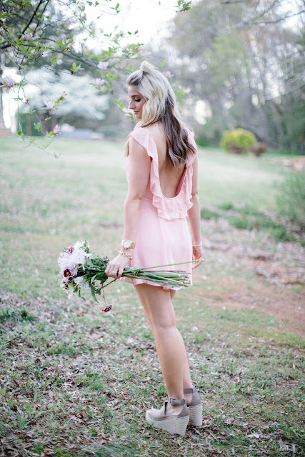 I love this sweet ruffled dress because it combines all of my favorite trends for spring in one outfit! Ruffles, blush, an open-back… and it has little hooks in the front, so cute! I don’t know why, but this dress reminds me of a butterfly, is that weird? Anyway, I paired it with my Marc Fisher wedges but you could easily do a heel, or cute flats if you wanted to dress it down. I also really love how turqouise looks with blush, if you haven’t noticed – you’ll see me wearing turqouise accesories all summer long. My favorite pieces are by Julie Vos, her jewels are middle of the road in pricing, and great quality! So if you’re not quite ready to splurge on a Yurman piece, I highly reccommend checking her site out here.