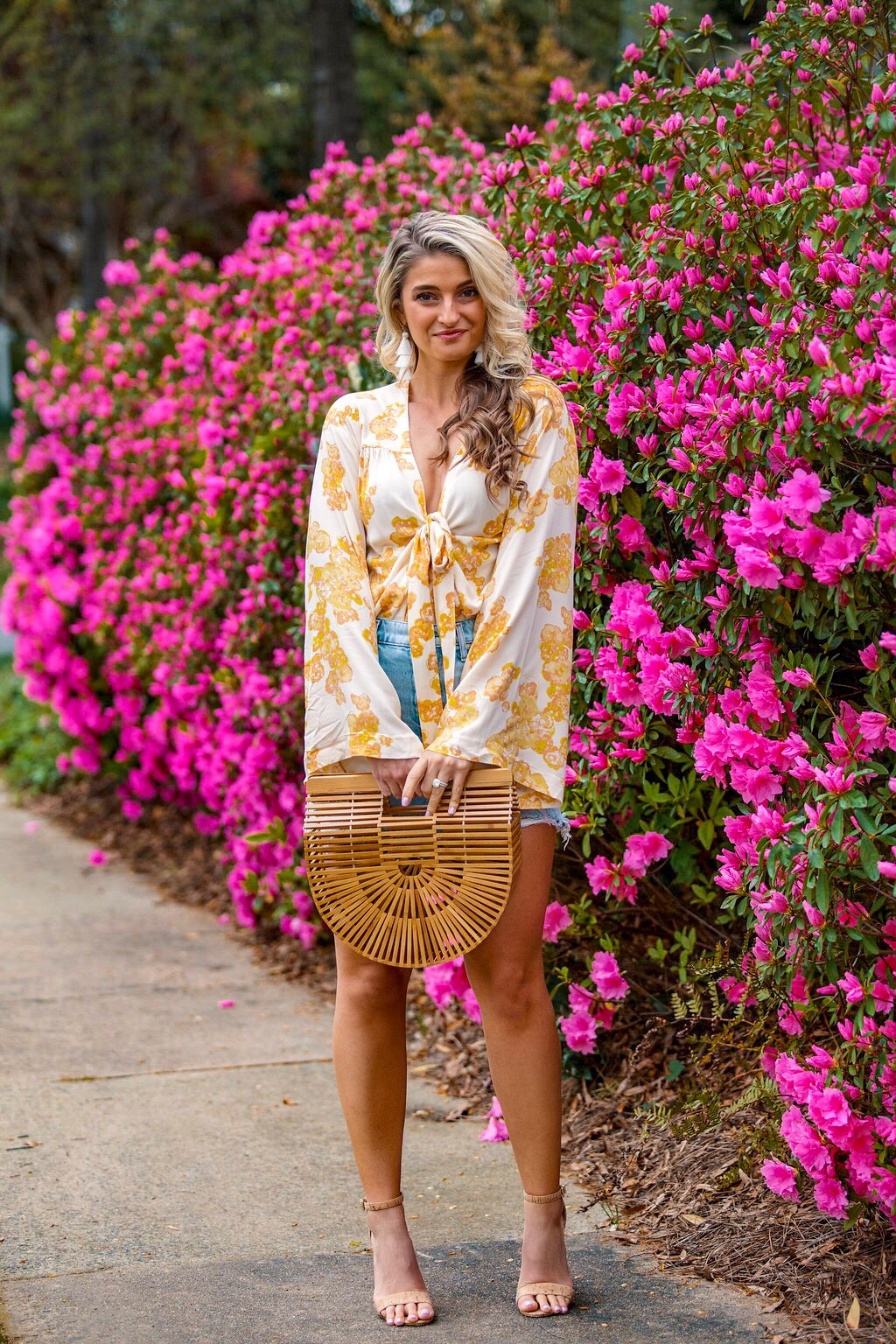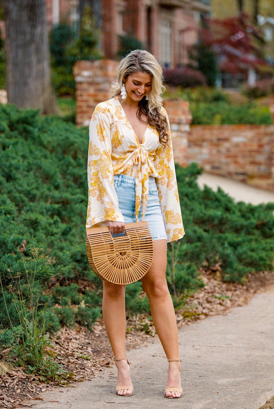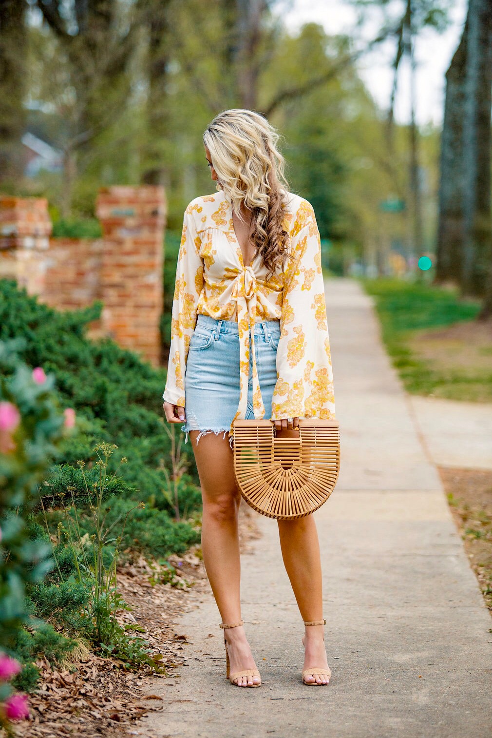 I have a ton of warm weather trips coming up, so I’m shopping for mainly summer clothes at this point – which is how I came across this floral bodysuit. The second it popped up on my screen I knew I needed to add it to my current collection of yellow. I don’t think I’ve ever really worn yellow, or been drawn to it until this year, and now I can’t seem to get away from it! Maybe it’s because it reminds me of warmer days and sunshine? Who knows. But what I do know, is that you need this whole get up. It’s so perfect for brunch with the girls, a lunch date, or really anything summer related for that matter. Personally, I’ve always got my eyes peeled for a good brunch outfit. So we will jut file this one away under “must wear to brunch.” The top runs true to size (I’m wearing a small) and so does my jean skirt. If you don’t own a jean skirt, invest in a good one. They never go out of style, and they last for forever. If I can wear it season after season for years to come, it’s worth it to splurge on one of quality. Quality over quantity, always!