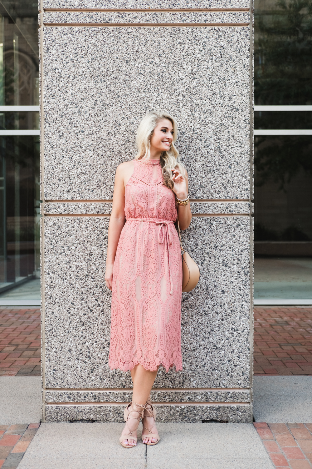 I absolutely love the lace detailing on this dress. It’s super feminine & flirty and in my opinion, it’s timeless. The “midi” length makes it appropriate for any occasion. You can easily wear this to a wedding, engagement party, bridal/baby shower, date night etc.! The high collar was extremely flattering and fit perfectly, so it was still comfortable. Oh, and can we talk about the price?! Serious steal considering it’s versatility. I got a ton of compliments on this one, highly reccommend!