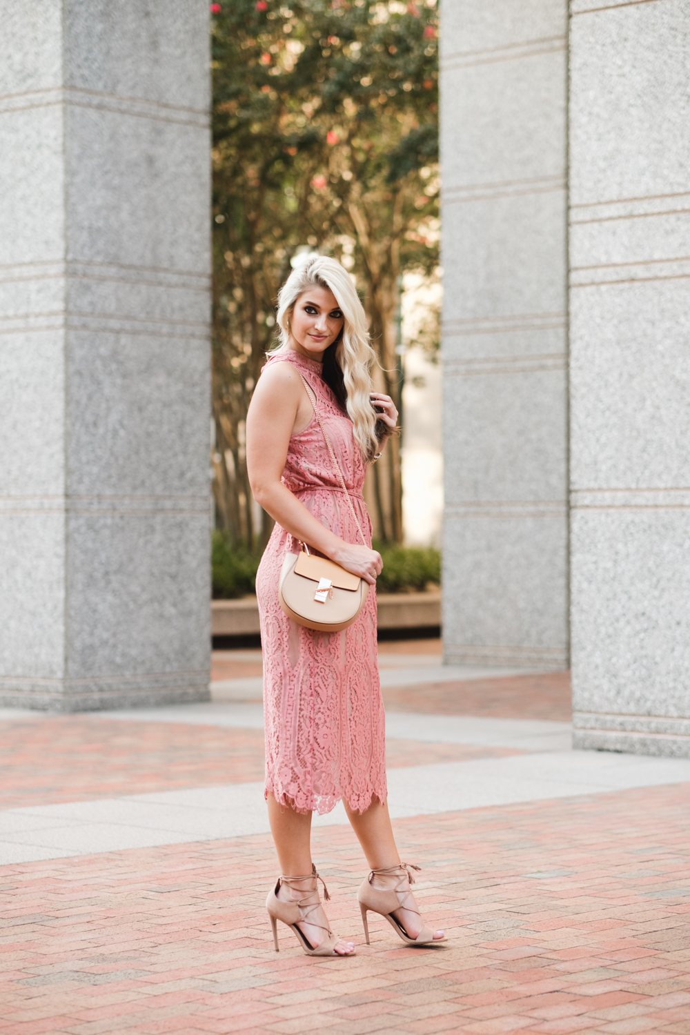 Lace Midi Dress // Lace-up Heels (similar here) // Bag (dupe for Chloe no longer available) // Stackable Rings // Link Bracelet // David Yurman // Watch