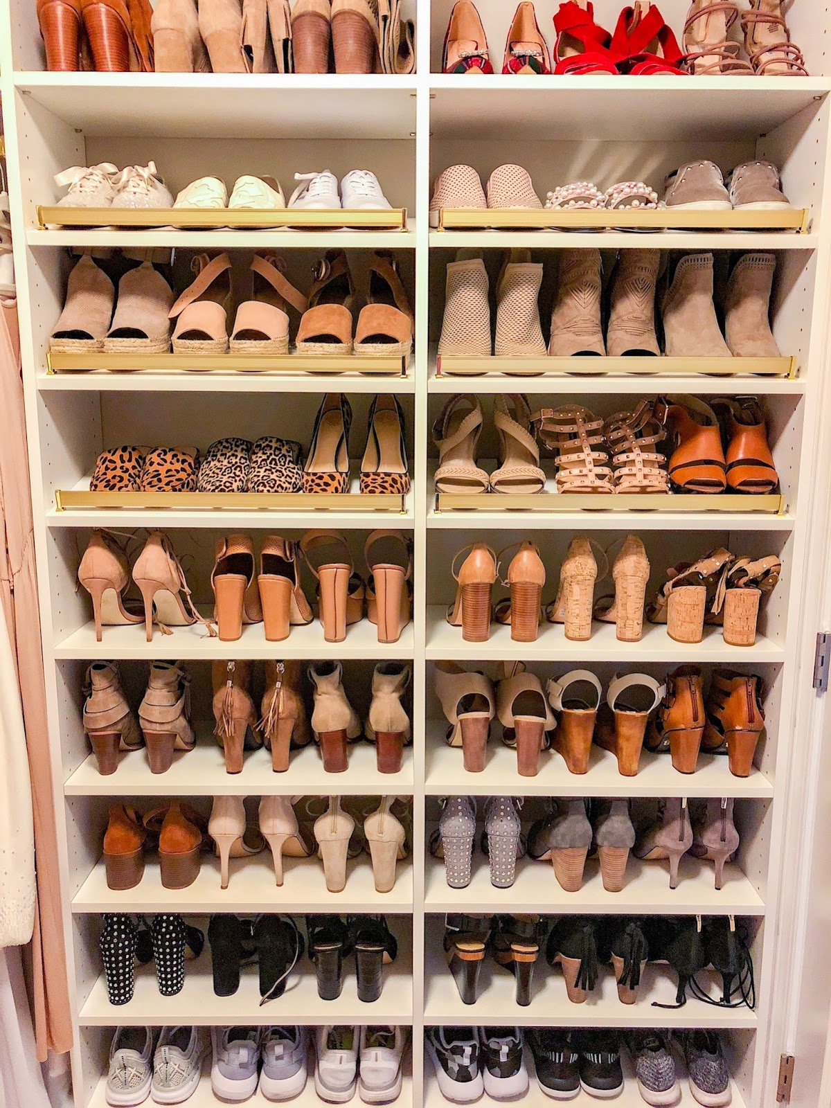 I am so excited to be sharing my closet reveal with you guys! We have been in our new home for a year and a half now, and the master closet has been a topic of conversation for us from the start. To be honest, I simply have way more stuff than what can actually fit in our current closet, so part of the frustration was simply coming from the fact that I needed to purge. I’m one of those people that has a really hard time purging things that have only been worn once, and I tend to tell myself I’ll wear it again even though I probably won’t. But, I’m proud to announce that my team started a whole new Instagram page just for that! So if you’re interested in my almost new/gently used clothes – check out @shopcheekybeen on Instagram.
