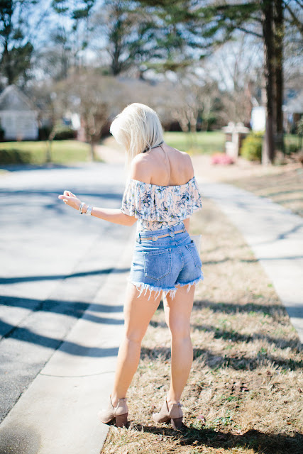 Spring florals are in bloom! I am so happy the warmer weather seems to finally be arriving, and hopefully it’s here to stay. I’m a sucker for anything off the shoulder and lately, my floral collection has been growing by the day! This top is perfect for spring and summer, and would look great with jeans too! The material it is made out of is super soft, so you almost forget it’s there. It also comes in navy, which would look so cute with white jeans! You can view the entire Clayton collection here. On another note, my shoes are worth mentioning because they’re a Nordstrom exclusive and the most comfortable booties I’ve ever owned! The sizing runs a little odd, so make sure to size down one size.