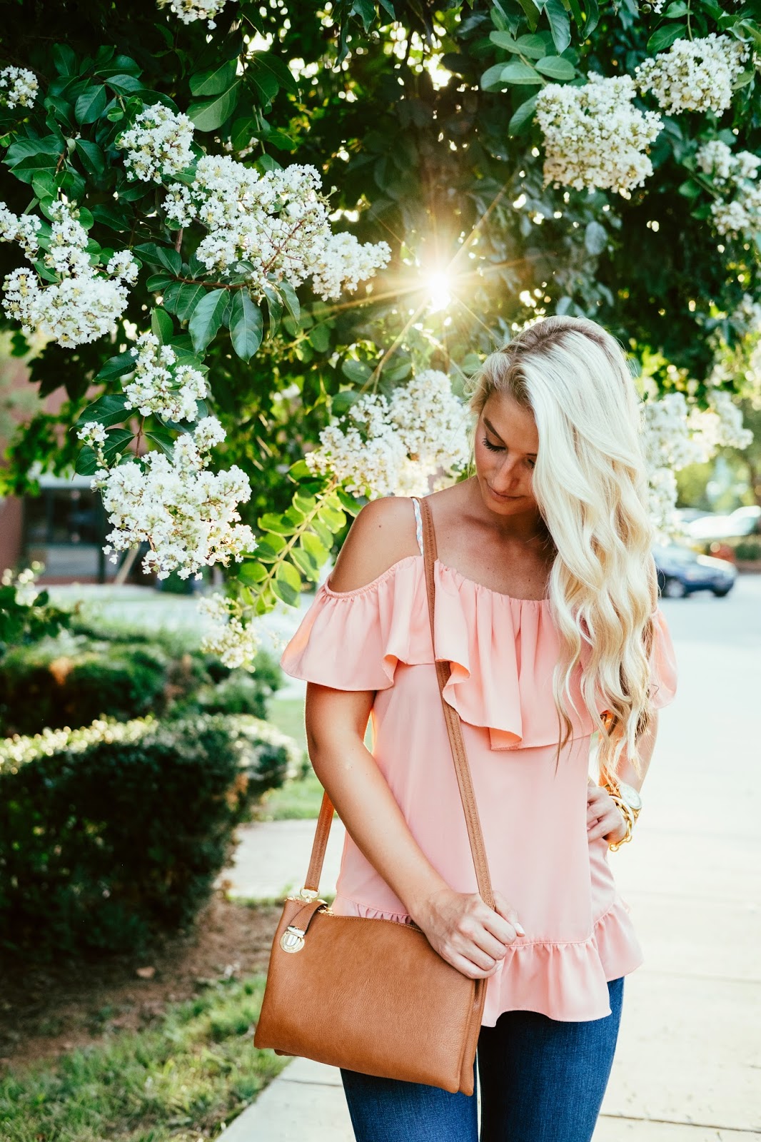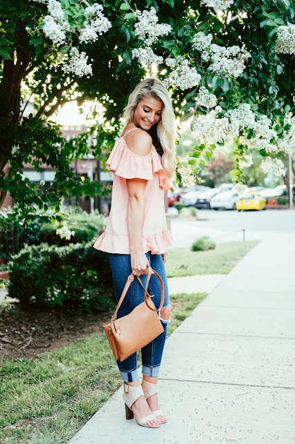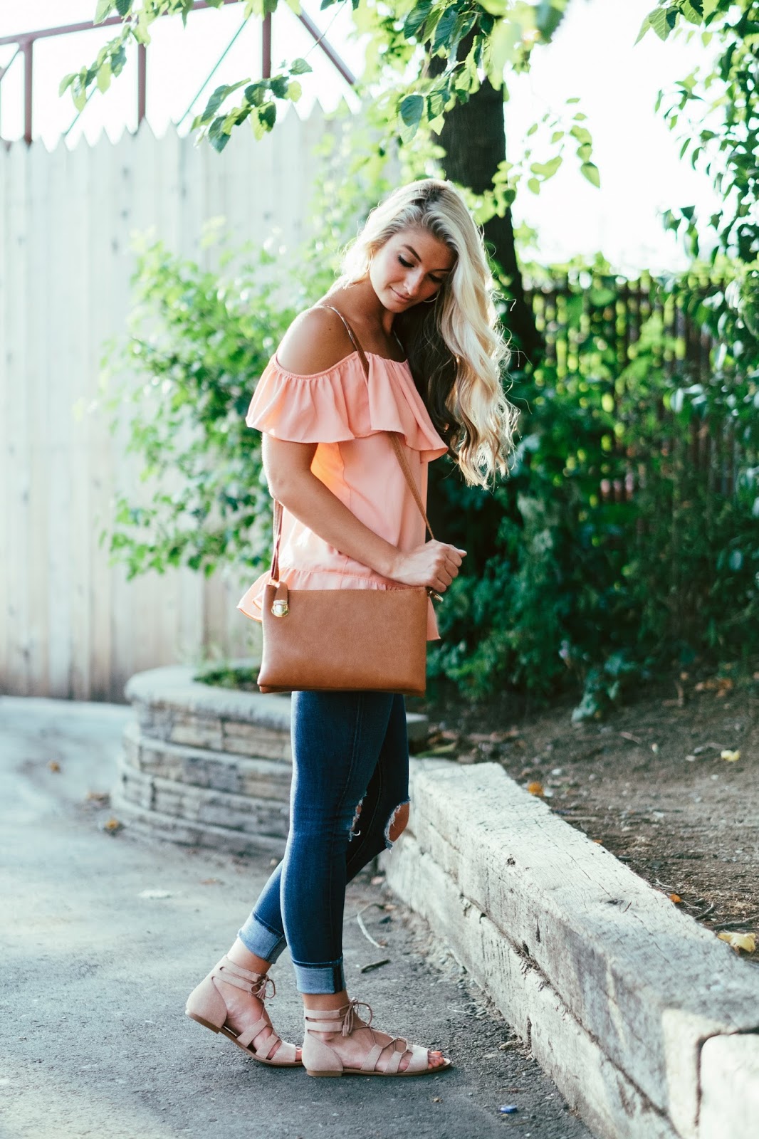 Nala Ruffle Top // Similar Denim // Splendid Jayla Sandals (I also love these and they’re on sale!!) // Earrings // Similar Bag // Baublebar Ring // Kate Spade Bangle // Julie Vos Link Bracelet