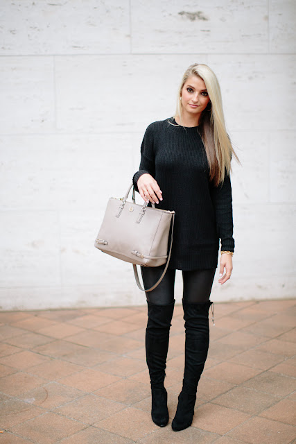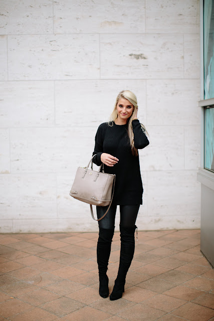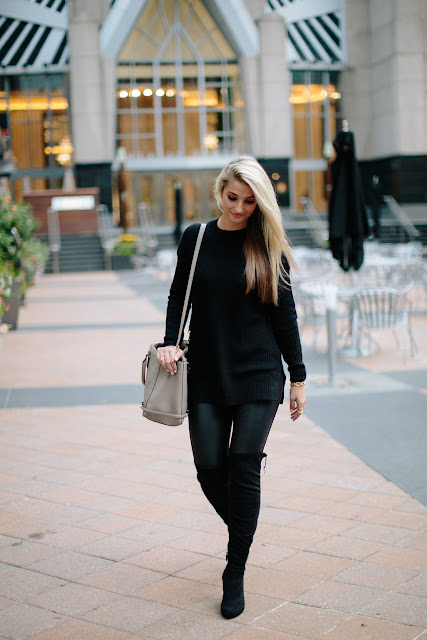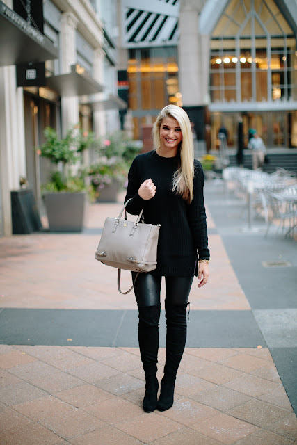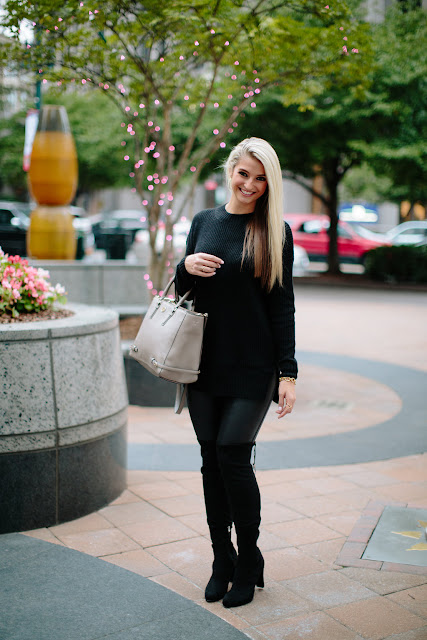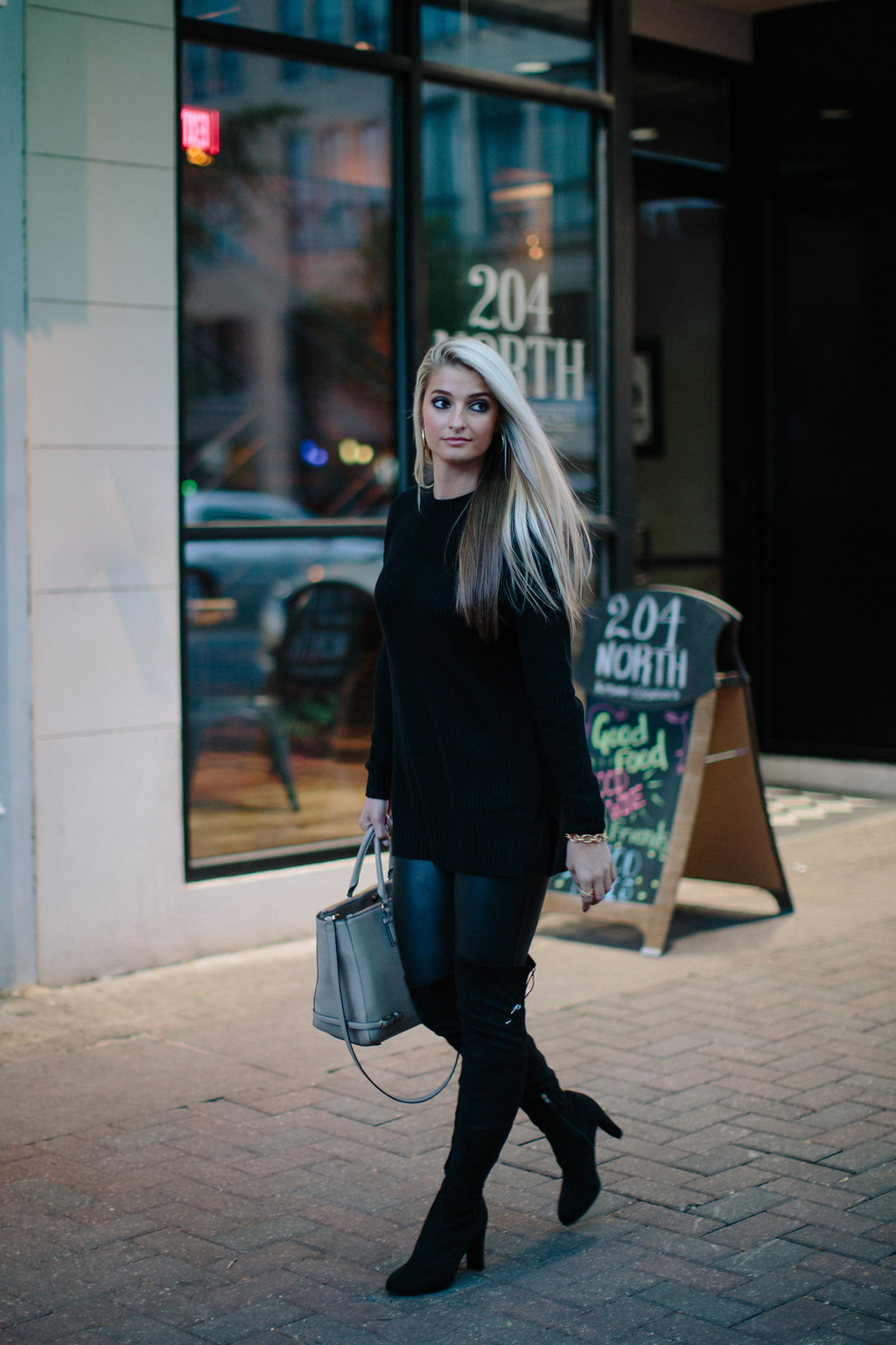 BP Sweater ($39, comes in 4 colors) // SPANX Faux Leather Leggings // Steve Madden OTK Boots // Tory Burch Handbag