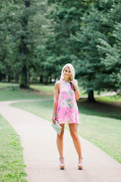 This is one of my favorite vacay looks, the print on this dress just makes me feel like I’m in the middle of the tropics somewhere! I love feminine and flirty colors, and how do you go wrong with neon pink? This color pairs perfectly with gold accents, and is sure to enhance the tan you’ve been working all summer for! Add strappy wedges and a floppy hat, and you’re all set for a weekend getaway!