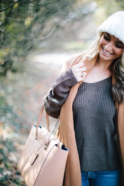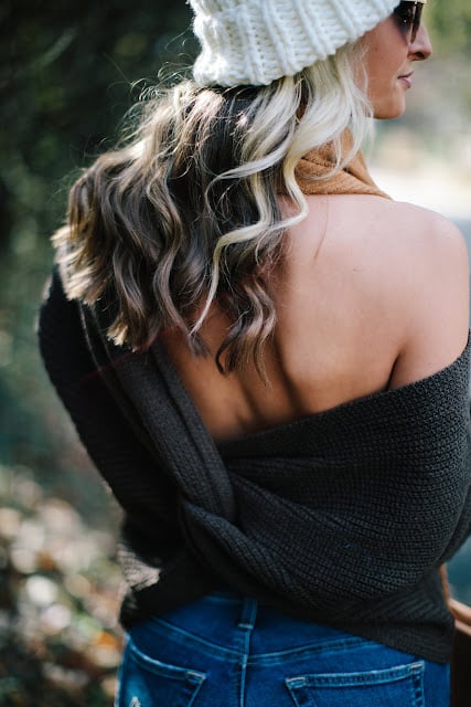 First things first, how fun is this twist back sweater!? It comes in six colors, and I’ve already got the second color en route to my humble abode. Green (all shades) is my favorite color to wear and I thought it paired really nicely with the chestnut colored scarf and boots. Unfortunately, my boots are from the Nordstrom Anniversary Sale and are just about sold out so I linked a few similar options. I also want to take a second to talk about my sunnies. I’m a big fan of DIFF Eyewear, and 90% of the sunnies you see me in, are from them. These are a pair from their newest collection, which happens to be on major sale this week for Black Friday (starting Thursday). When I got my first pair of DIFF’s I was shocked at the quality. I feel like I’m somewhat of a sunglasses snob because before DIFF I only wore designer brand glasses, so for me to say this – is a big deal. They are extremely comparable to the quality of Ray Bans, and sometimes I actually think they’re better in quality than my expensive glasses. Would love to know if you feel the same way if you end up trying them out!
