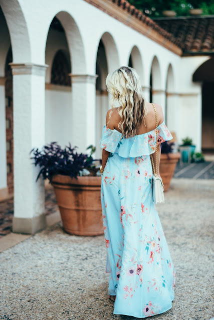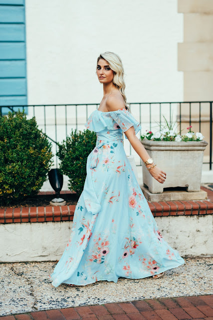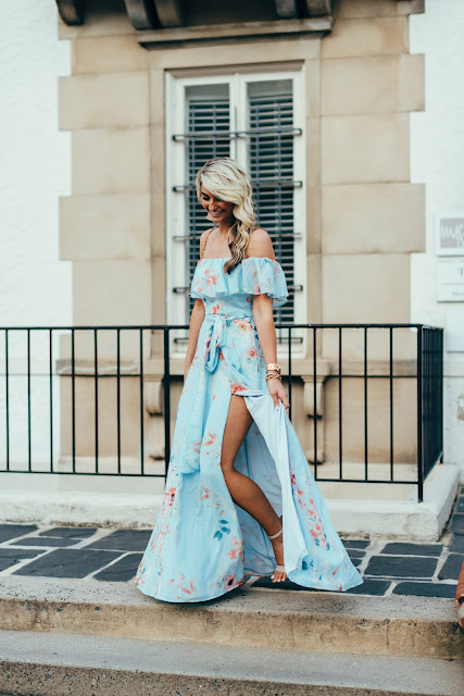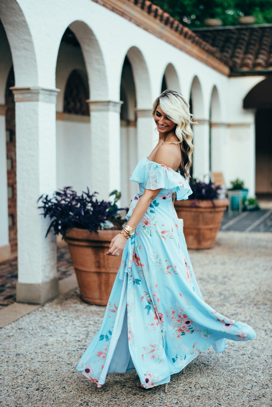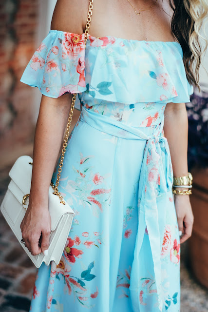 If this dress doesn’t scream Tuscany to you, I don’t know what will! I am absolutely obsessed with the color, the floral pattern, the high slit, and the off the shoulder ruffle overlay. It makes me wish we had a European vacation scheduled this summer, but I guess Ruru’s in Charlotte will have to do. Anyway, if you’re not a fan of the maxi length (I get it, it’s summer and it’s hot), it also comes in a shorter length here. I actually tried both on because I wasn’t sure which I would like better, but I felt the maxi was more flattering overall. I also got tons of compliments on this when I wore it!